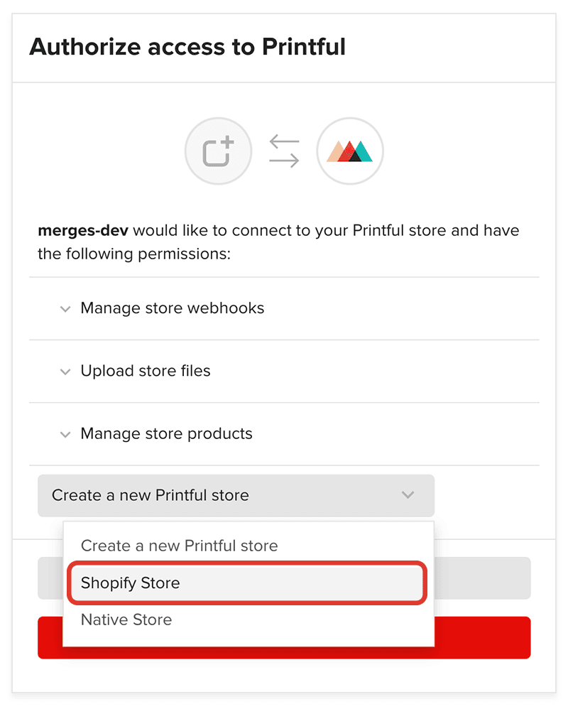 Important: Select your existing Printful store that’s already connected to your Shopify store.